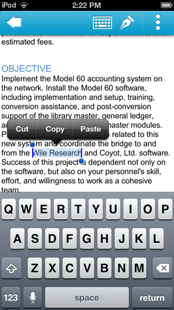 Whether you need to just catch up on reading some files or if you need to actually create a presentation for a meeting, Docs To Go allows you to work right from your phone or tablet with our first class viewers and full featured editing. No need to be attached to your computer all day when you easily work right from your mobile device.